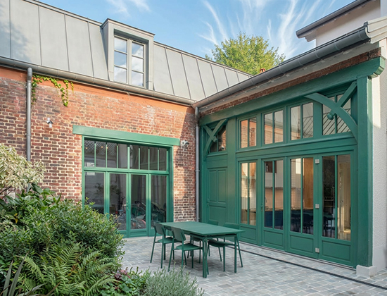 Au cœur du centre-ville de Saint-Cloud, le projet transforme une maison en brique du début du XXᵉ siècle pour accueillir une jeune famille avec trois enfants, tout en préservant l’esprit de l’existant.